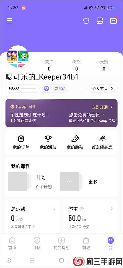 1、首先,我们在Keep主页最下方点击【我的】,进入到【我的】这个页面。