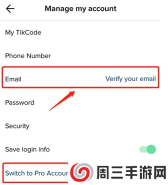 2.验证邮箱:点击右上角三个小点,打开Managemyaccount。验证邮箱Verifyyouremail,你会收到一个code,填进去即可。