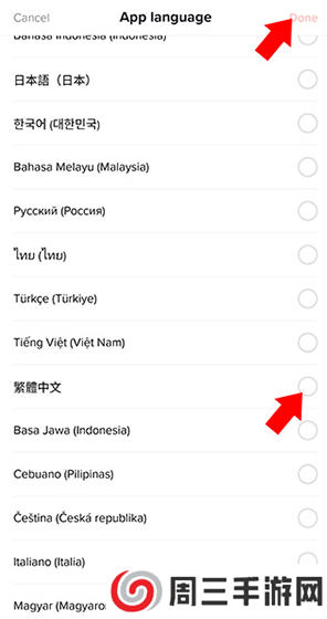 在打开的语言选择界面将语言切换为繁体中文,之后点击右上角Done选项即可