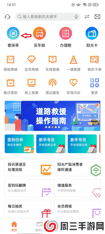 来到首页我们可以看见相关的汽车服务功能,如查保单、买车险、办理赔等等;