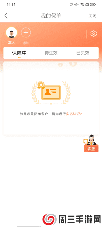 点击查保单服务功能,进入之后我们即可进行查看当前的保障中、待生效、已失效信息;