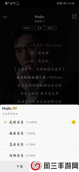 4、点击最上方的无损音质后点击下方的下载按钮就可以了