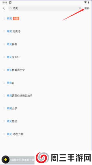 1、在搜索栏输入你想要下载的歌曲名后点击最右侧的搜索二字
