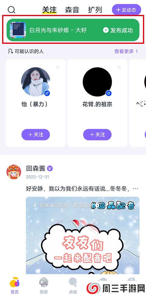 3、也可进入首页的【森音】页面中,选择喜欢的森友点击【关注】即可