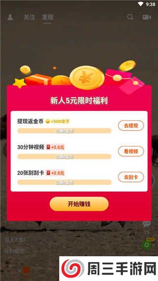 2、视频左边有个红包的图标,等他外面那个圆圈全变黄了就可以观看下一个视频。