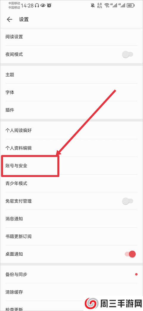 2、然后点击账号与完全