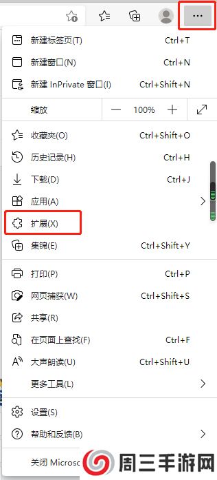 8、若更多工具里无“在Internet explorer模式下重新加载”,单击右上角的“…”图标,点击“扩展”
