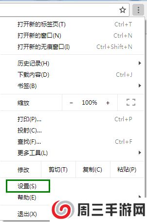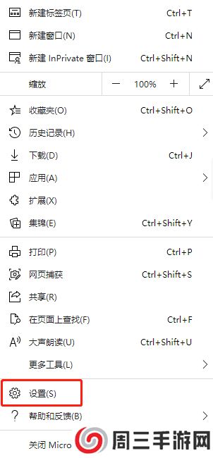 3、在显示的菜单中,单击靠近底部的设置