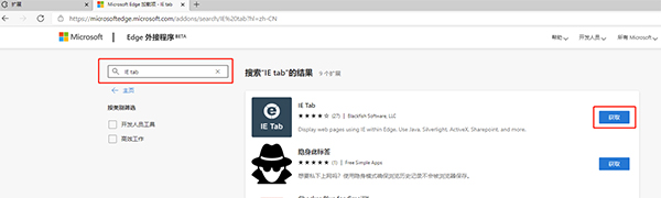 10、在搜索框输入“IE tab”搜索出来后点击“获取”