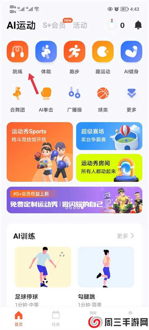 进入软件,可以看到首页最醒目的功能就是跳绳。