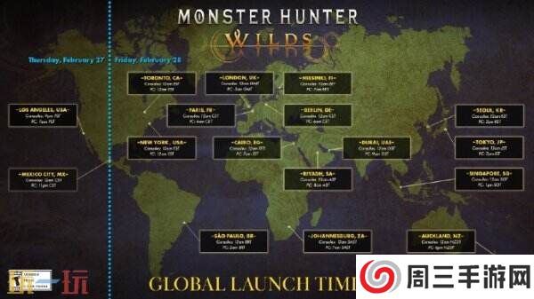 卡普空近日公开了《怪物猎人 荒野》(Monster Hunter Wilds)全球解锁时间表,主机版《怪物猎人 荒野》将在北京时间2月28日0点解锁,PC版游戏则在2月28日下午1点发售。