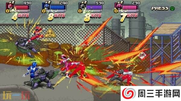 能量冲击 —— 现在每位战队成员都能发动一种特殊攻击,在小范围内击退附近敌人,但这会消耗角色少量生命值(前提是攻击命中敌人)。同时按下 “攻击” 和 “超级攻击” 按钮,即可施展能量冲击。