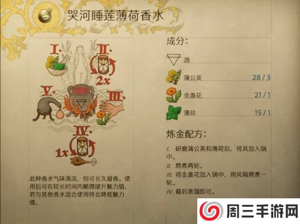 《天国:拯救2》哭河睡莲薄荷香水炼金配方一览