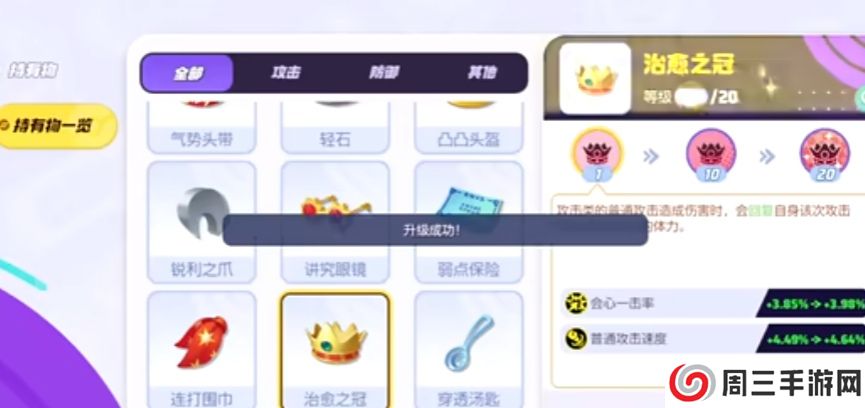 8、持有物的提升和获取可在商店的道具区完成购买和升级,每提升一级,基础属性都会得到增强,每提升10级,核心属性将获得提升。