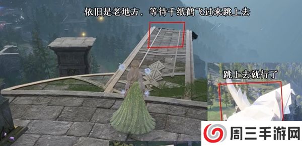 5、接着等到千纸鹤飞过来之时跳跃上去。