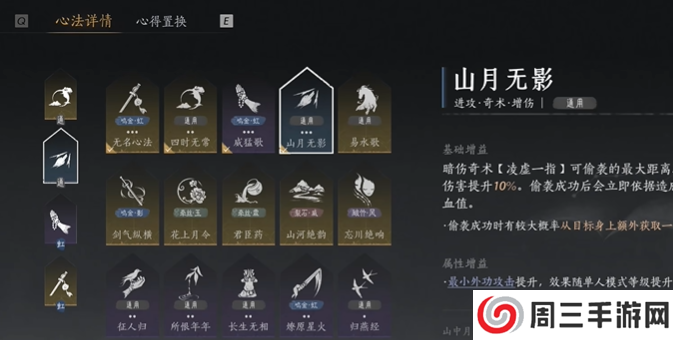 这里建议玩家携带山月无影心法刷至上限,只需七分钟左右,全程只用灵犀一指。